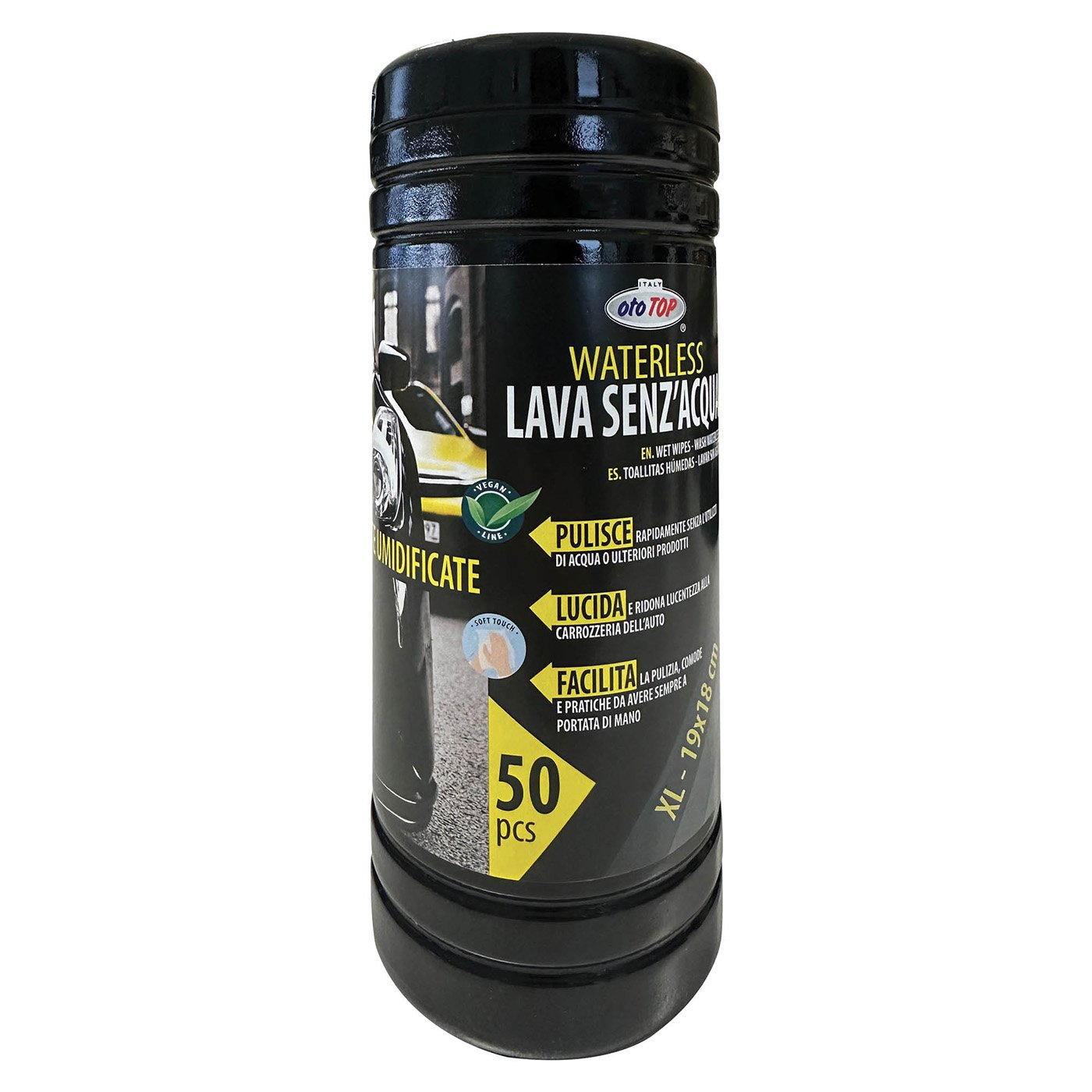 Nedves törlőkendő otoTOP (Vegan Line) gyors tisztítás a lakkozott karosszériára. Víz nélkül használható, visszaadja a kezelt felületek fényét és nem hagy nyomot. XL 19×18 cm, visszazárható 50 db.