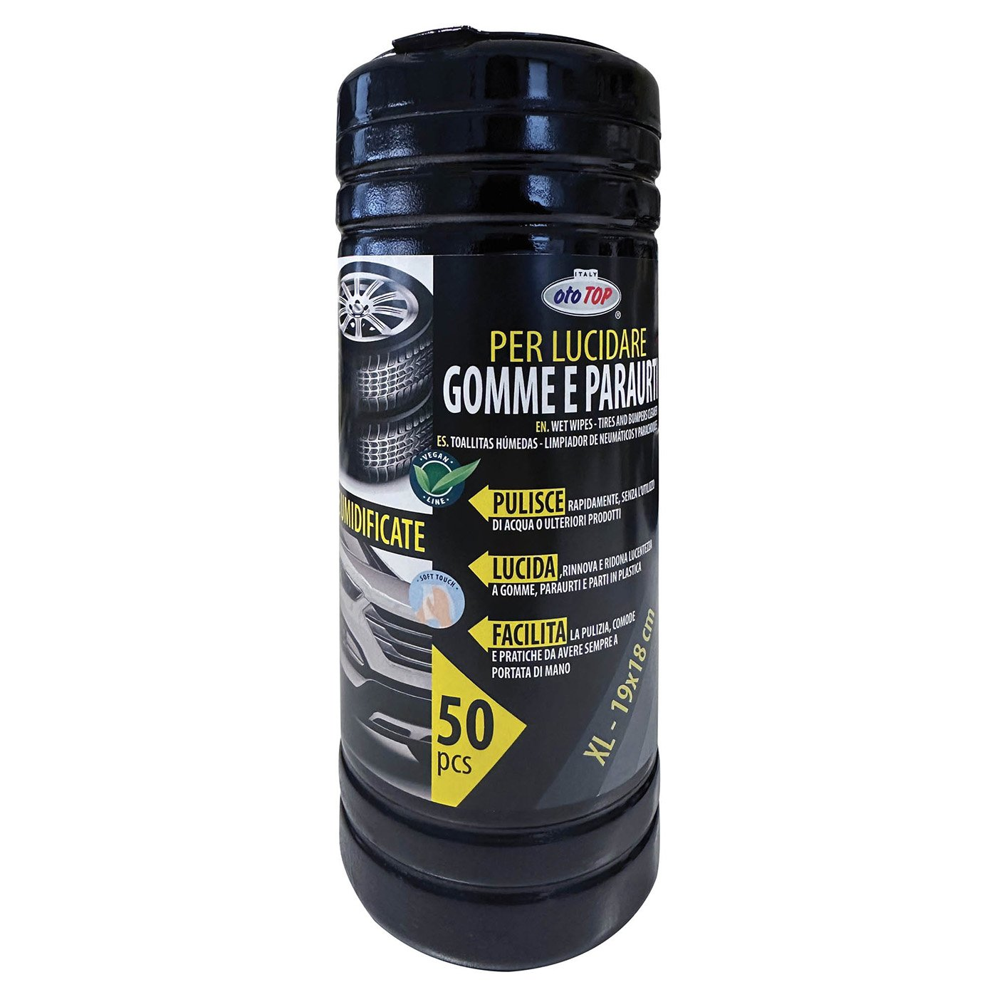 Praktikus nedves törlőkendő a gyors tisztításra a gumiabroncs újjáélesztésére, lökhárító és egyéb külső műanyagra (díszlécek, küszöbök). Eltávolítja a port, víz nélkül használható, egységes ragyogást nyújt, újjáéleszti az eredeti felületeket. Nagy formátú XL 19x18 cm szilárd textúrával, nem tépődik és megkönnyíti a nagyobb felületek tisztítását. Zárható doboz, 50 db megfelelő az autóba a garázsba vagy akár a műhelybe - mindig kéznél van.