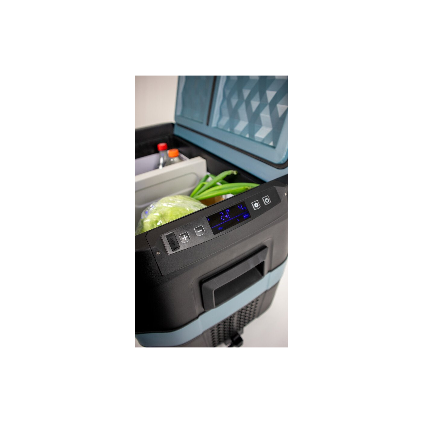 • Kijelző, USB port, fogantyú
