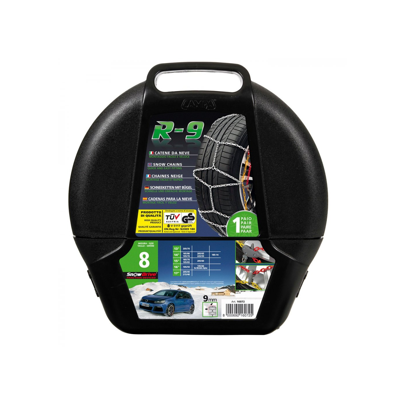| Felirat | minőségi, nagy szilárdságú 9 mm-es hóláncok edzett acélból |
